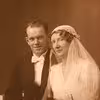 Brudebillede ca 1954 af Alice Byskov Kristensen, datter af Krista og Jens Peder Kristensen i Store Houdam - og Vilhelm Mulvad Jeppesen.