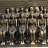 Billede af Vandborg-Ferring gymnastikforenings piger ca 1930. Fotograferet foran det daværende Missionshotel i Lemvig i forbindelse med kredsens foraarsopvisning.