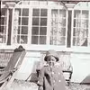 Marie Kjelder med Frits, Juelsgaardvej 12 - foran Bovbjerg Badehotel, Vesterhavsgade 2, Ferring, 1952