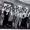 De unge piger i KFUK`s ungdomsafdeling samlet uden for Oda Christensens hjem paa Transvej 31.