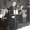 Musikken ved Helga og Peder Guldbergs sølvbryllupsfest til venstre Grethe Madsen og Oluf Henriksen.Sønder Søgaard, Søgaardevejen 17, 1956.