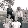 Fra venstre: ukendt - Jacob Krarup paa Ellemosevej 20, Vester Gajland - sønnen Holger Krarup, Ballebyvej 4, 1958-60