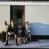 Fra venstre: Karl ( Kalle ) Sønderby Hansen, Bente S. Hansen, Martha Sønderby Hansen, alle fra Thyborønvej 29 - Søren Peder Ruby Christensen, Thyborøvej 23, ca. 1951.