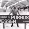 Purhushallen 1975. På billedet ses Poul Lindholt med et skilt til Purhusmessen. I flere år blev der afholdt forbrugermesse i hallen med messestande, der kunne lejes.
