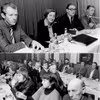 Avisudklip: Arbejdsmand Karl Brix, Hastrup, får udleveret sin stemmeseddel på Spentrup Kro. Spentrup-Gassum skolesag. Måske ny skole i Hvidsten. 1959.