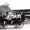 Folkedansere i studetrukket vogn og Marius Fiil, Hvidsten Kro.