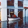 Oversvømmelse ud for Østergade 17 i Lemvig, robåd i 1950-erne