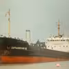 Stort (russisk) skib i Østhavnen. Indsejling gennem fjorden.