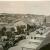 Udsigt over Lemvig Havn med mange parkerede biler - Torvedag? I forgrunden ses 2 "Minebøsser" S/H foto ca 1930.