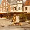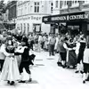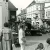 Folkedansere på Torvet. Gert Nielsen i forgrunden med høj Hat. S/H foto 1984