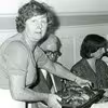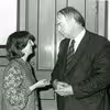 Ellen Damgaard, Museumsinspektør på Lemvig Museum viser papir til tidl. boghandler Møller, Lemvig. S/h foto, ca. 1980-1990.