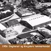 Luftfoto af Lemvig Svineslagteri og Krejslers Tømmerhandel, Lemvig, 1956