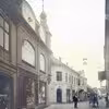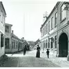 Vestergade set fra Slagter Mortensen mod torvet og kirken.