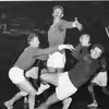 Håndbold. HfS. Bagerst fra venstre: Vagn Højgaard, Ove Hansen, Jørgen Ballisager, Leif Hoffer Jensen