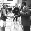 Håndbold. Torsted I.F. Horsens borgmester Henning Jensen gratulere anfører Helle Hansen med DM i pigemesterrækken 1988.