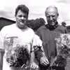 Horsens Orienteringsklub. Bent Lindstrøm og Jacob Ravn modtager blomster på Dyrskuepladsen.
