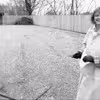 Lydia Madsen knipler ny alterdug til kirken, 1981.