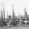 Fiskerbåd i vestre inderhavn, Thyborøn, 1957.