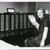 Kontorarbejde på Grenaa Dampvæveris terrasse.