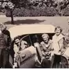 Birn, Richard, Mrs. Malcom, Albert Sowrey og Astrid Sowrey ved Alberts Buick i U.S.A. Gruppebillede.