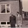 Birn, Richard, Valdemar H. Birn og Overingeniør Volk i samtale foran huset i Måbjerg. Gruppefoto.