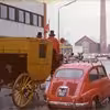 Foto fra september 1974, af gul postbil trukket af heste i Holstebro.