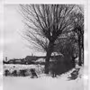 Gammel gård i Hvidovre. Gård bag hæk, 2 popler. 53x40. Olie. 1918. Jens Sinding.