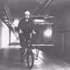 Medarbejder på cykel på vej igennem transportgangene under hospitalet