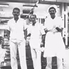 Spædbørnsafdelingen. Far, mor og barn sammen med sygeplejeelev