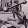 Træskruetvinger hænger på værkstedet, Snedkermester Albert Larsen, Ordrup, 4540 Fårevejle