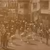 2 bærere af reklameskilte går rundt i Ry By og reklamerer for markedsdag ved Ry Byfest.