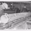 2 savværksarbejdere ved saven i Ry Mølles Fabriker på Siimtoften i Ry.