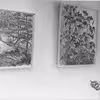 Tømrermester Hans Kjeld Bitsch, Ry betragter 2 malerier af Agnes Kristensen.