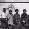 Fem børn på deres første skoledag i Ry