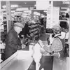 Interiørbillede fra den tidligere Brugsforretning på Klostervej 6 i Ry med kassedame og 2 kunder.