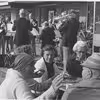 Udklædte folkedansere på parkeringspladsen Klostervej 1 i Ry.