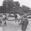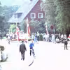 Kajakker bæres over Kyhnsvej i Ry ved den årlige konkurrence Tour de Gudenå.
