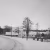 Vinterbillede fra Kyhnsvej i Ry, med Smedekrogen til højre og fiske- og tællehuset til venstre.