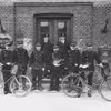 Postbude foran hovedindgangen til Ry Jernbanestation og Postekspedition.