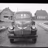 Arbejdsbil fra Jydsk Telefon på Liebingsplads i Ry, missionshuset Libanon ses i baggrunden.