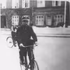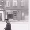 Nærmest kamera postbud Markus Poulsen på cykel ad Klostervej i Ry med Hotel Ry i baggrunden.