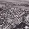 Luftfoto af Ry set mod øst, med Lillesø, Ry Mølles Fabrikker og Rye Mølle i forgrunden.