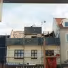 André Jørgensen arbejder med på renovering af tag på Adelgade 102 A.
