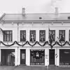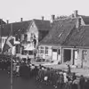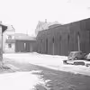 Handelsbankens byggeplads, kranbiler løfter bjælker, Adelgade 78