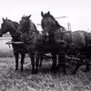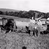 Karl Jacobsen (f. 1888) i Rensløkke på slåmaskinen forspændt to heste.