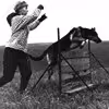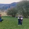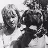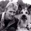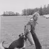 Hundedressur - Skanderborg Hundeførerforening, t.v. Golden Retriever med due i munden, t.h. hundeejer