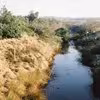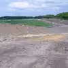 4 fotos af den udtørrede Bølling Sø og trædestenene