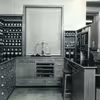 Galten Apotek, Søndergade 2, Galten, kontoret. Apoteksassistentelev Else Frost og apoteker frk. Ebba Aagaard. Foto ca. 1964.