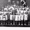Stjær pigegymnastikhold uden for Stjær forsamlingshus. Foto ukendt år.