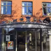 Galten Biblioteks indgangsparti, Torvet 7, med dørudsmykningen "Fablernes Port"